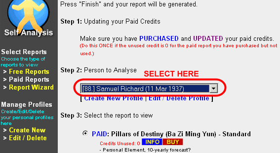 - Click on the Personal Self link, which opens up a Report Wizard on the right frame.
