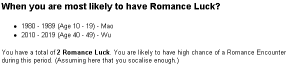 Understand when you have Romance Luck, Nobleman Luck, Clashes and Combinations