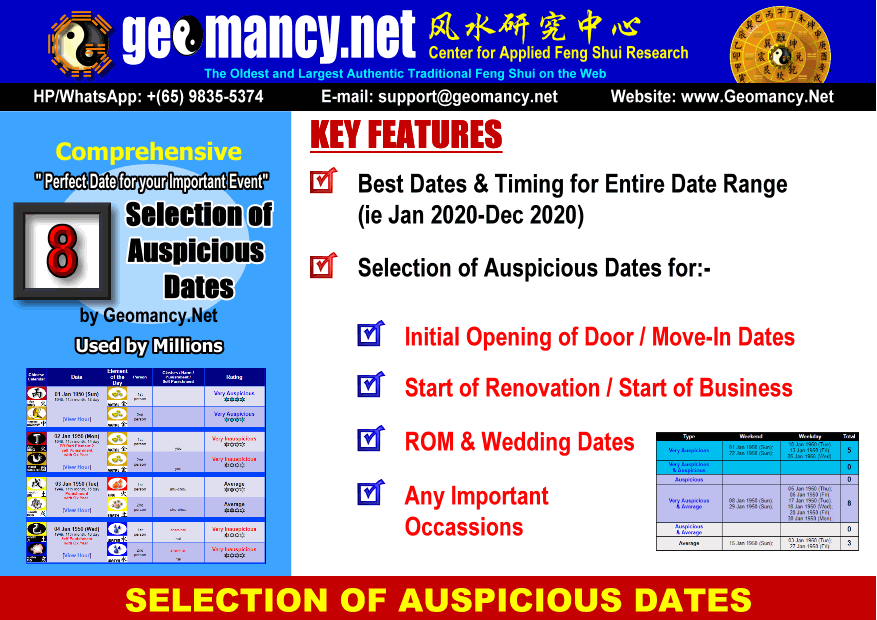 Our Selection of Auspicious Date for Initial Opening of Door, Move-In Dates, ROM & Wedding Date, and Any Important Occasion