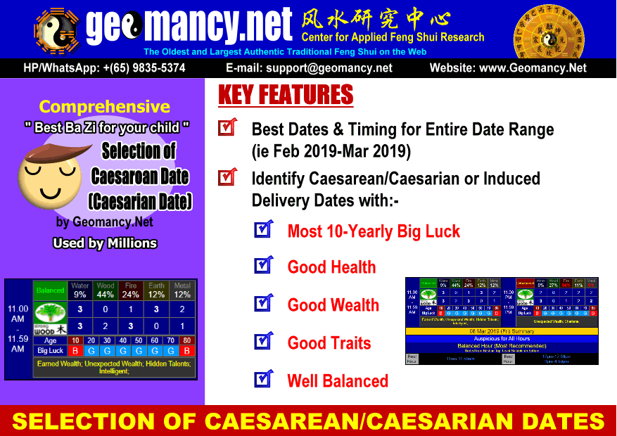Our Selection of Caesarean/Caesarian Delivery Date will select the best date that will give your baby the best ba zi luck for his/her future